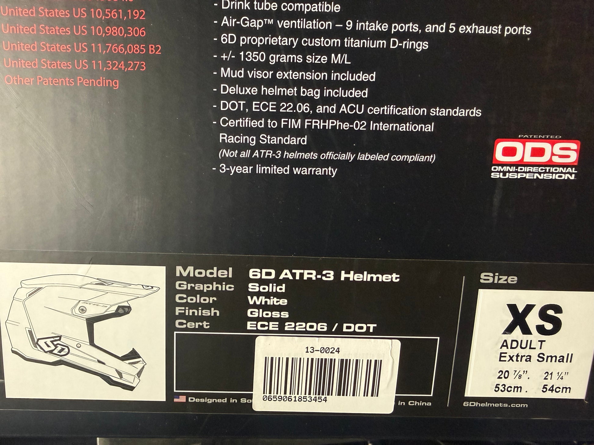 6D ATR-3 Solid White X-Small (Adult) - (Open Box - NO RETURNS)