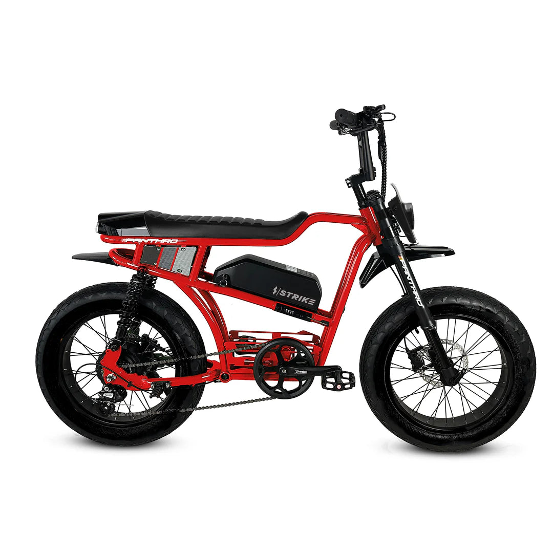 The Panthro is a powerful electric bike designed for both commuting and recreational use. It features a 750W rear hub motor and a 48V battery, which provides plenty of power to reach a top speed of 27 mph by pedal assist. With a range of up to 45 miles on a single charge, it's well-suited for long-distance rides. The bike is equipped with a Shimano 7-speed derailleur for smooth shifting, hydraulic disc brakes for safety, and fat tires on 20-inch wheels.